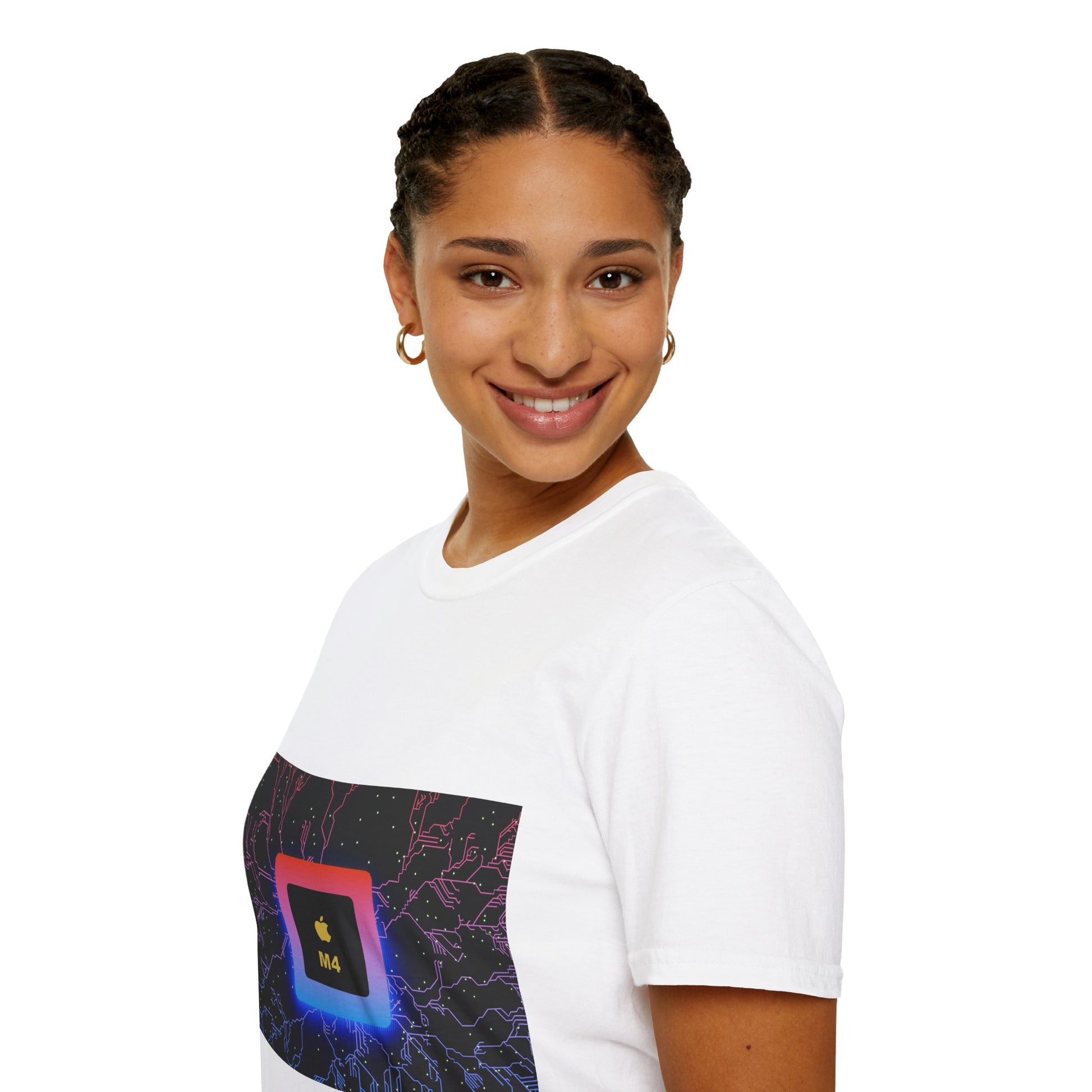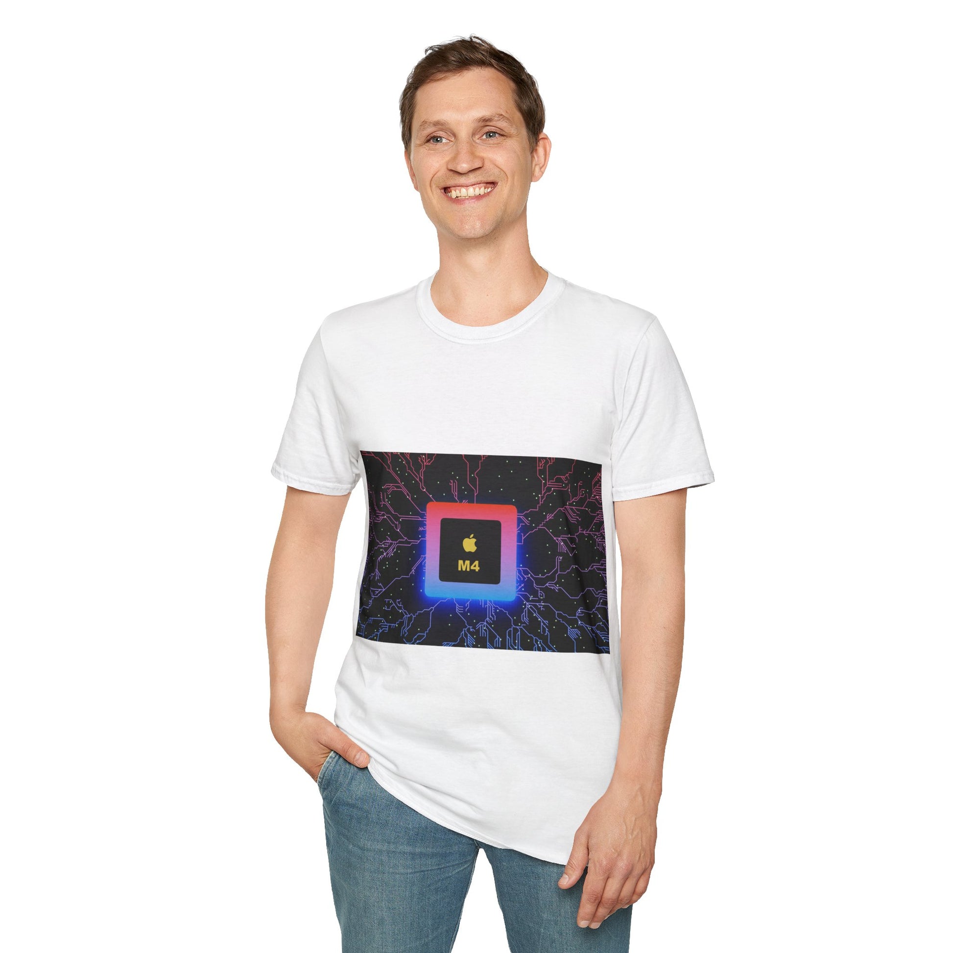 Apple M4 - Unisex Softstyle T-Shirt, Tech Apparel, Gift for IT Professionals, Networking Gear, Certification Celebration