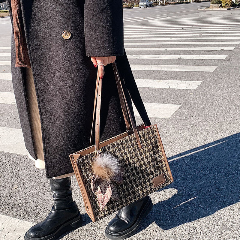 Plush Ball Silk Scarf Pendant Fashion Houndstooth Small Square Bag